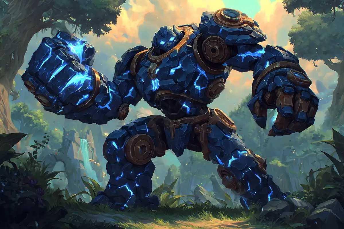Golems come in varying shapes and sizes, as well as purposes. Whether they're big or gargantuan, made of metal, rock, or even a gelatinous substance, made for physical activities, intellectual studies, or any other profession, no two Golems are the same, but the one thing that they all have in common is their identity as artificial beings. Of course, it would be possible to say that every individual Golem is unique by itself, except for those designed to be part of a mass-produced product line which, more often than not, are mostly located in Piltover. Known for its technological advantage over the rest of Runeterra, the City of Progress houses many types of Golems. But in the eyes of Amir Sharpe, one of many engineers that Piltover has to offer, all these Golems would not suffice, whatever they were meant to do. In his vision, he sought to create a mechanical wonder that would be considered revolutionary, something that would be more than enough. So after days upon days of a seemingly never-ending brainstorm under the ceiling of his house, an idea sparked in his head: a Golem fueled by oxygen! Such a marvel wouldn't need to stop to have its resource tank refilled all the time, be it fuel or coal or anything else, as it would constantly reinvigorate itself with the air around it. So after several months, Sharpe created what would be the prototype for what he deems the future of Golems, and he would name him Sharpie, a name that mostly stems from narcissism and a lack of creativity. Alas, Sharpe's joy would be shortlived, as a sudden blaze erupted in his building, which collapsed the house onto him, burying him under a pile of burning debris. Some time has passed, and Sharpie would be recovered from the rubble, as well as all the other things there. Still inactive, the investigators that recovered him I had no idea what kind of Golem they were looking at. Nonetheless, they decided to activate him, as another Golem will always be helpful to society. Now functional, Sharpie moved about aimlessly, knowing not what to do, trying to understand his surroundings. Neither the Golem himself nor his supervisors could tell what he was meant to do. After several endeavors, No one could still figure out what Sharpie was meant to do, even though it was clear that he ran on a never-before-seen oxygen-powered engine. Revolutionary as he may be, he was planned to be deactivated, but not until he tries one last thing: an expedition to Ixtal, something that Piltover is very fond of. So there he was, deep in the jungle, together with a crew, doing whatever they're supposed to be doing on any expedition. Everything went normal… until a dragon showed up. Easily dispatching the guards, all seemed lost at the dragon's might. But seeing the violence unfold before him, something triggered within Sharpie's inner mechanism. With the air around him to power him up, he rushed to face the dragon, and with a single pneumatic punch, sent the dragon flying through the trees, carving a path of destruction. The dragon fled the scene immediately, and the expedition was saved, thanks to the Golem whom no one knew what he was supposed to do… until now. Sharpie is supposedly a combat-grade Golem, designed to take on dangerous tasks. After his display of might, Sharpie was assigned to all kinds of missions that required his oxygen-powered, utilized as a soldier of Piltover, even if that wasn't what he was meant for. Regardless, it's a shame Sharpe himself never had the chance to see the fruit of his hard work, because if he did, he would be proud… too proud, in fact.